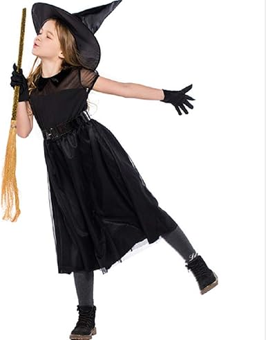 Iutoyye Fantasia De Bruxa De Halloween Para Criancas Pequenas Meninas Preto Elegante Vestido Com Chapeu De Bruxa Preto L Height 130 140cm 51 2 55 Amazon Com Br