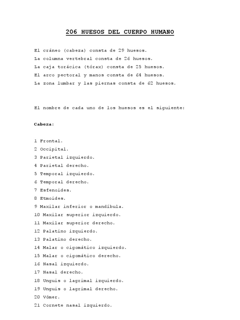 206 Huesos Del Cuerpo Humano Nombres E Imagen Pdf Indonesia Culture