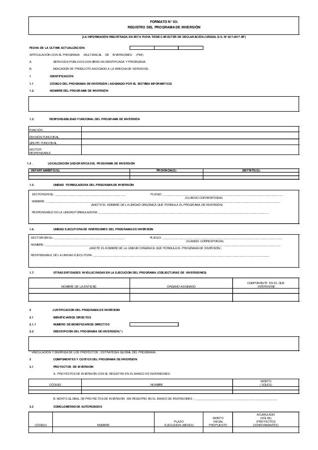 Formato 3 Registro Del Programa De Inversion