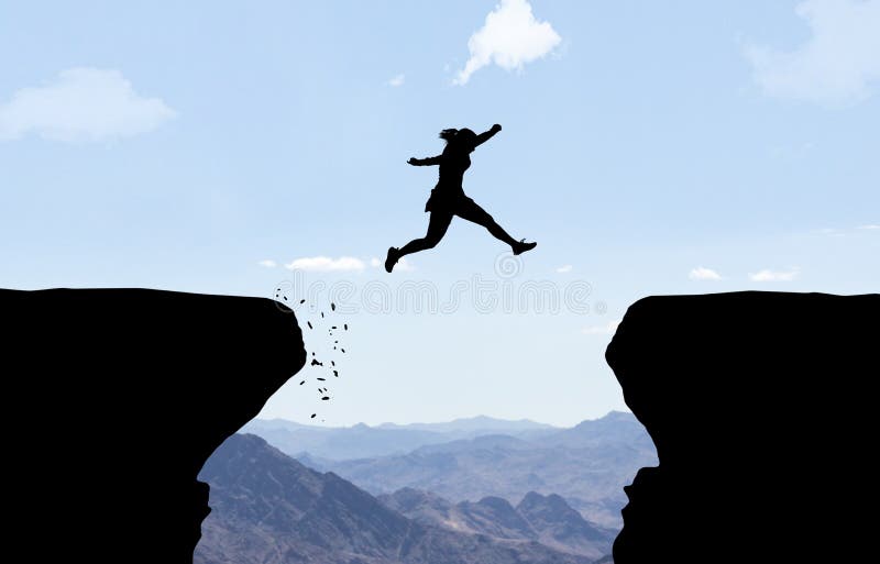 Aterrissagem Da Mulher Apos O Salto Sobre O Abismo Imagem De Stock Imagem De Sobre Aterrissagem 111231251