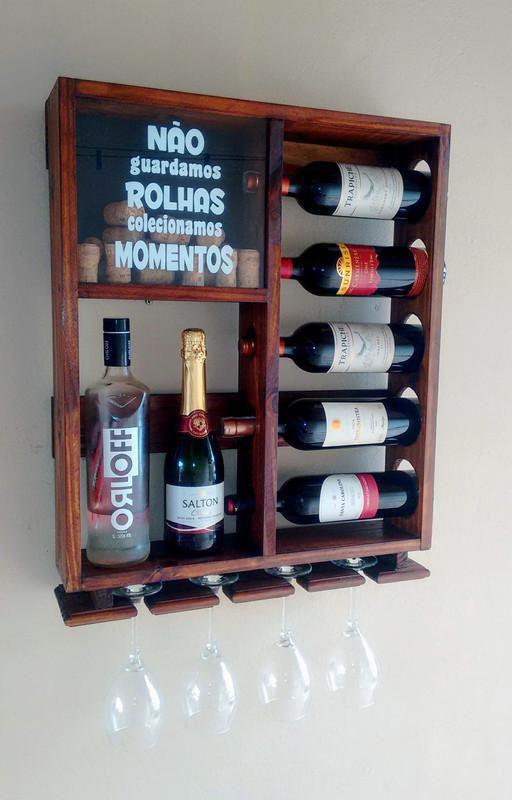 Adega De Madeira Para Vinhos E Whisky Com Porta Tacas R 49 90 Armarios Kitchen Decor Wine Glass Rack E Wine Rack