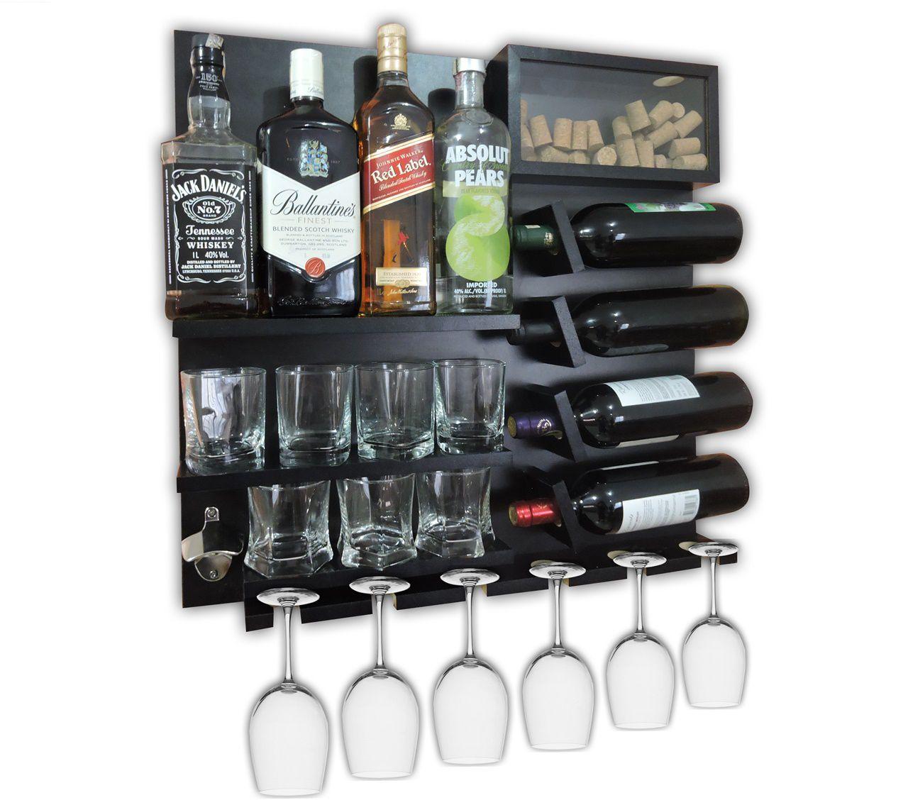 Bar Barzinho Adega Suporte De Parede Para Whisky Vinhos Bebidas 80x60cm Preto Fosco Soul Fins Porta Tacas Magazine Luiza