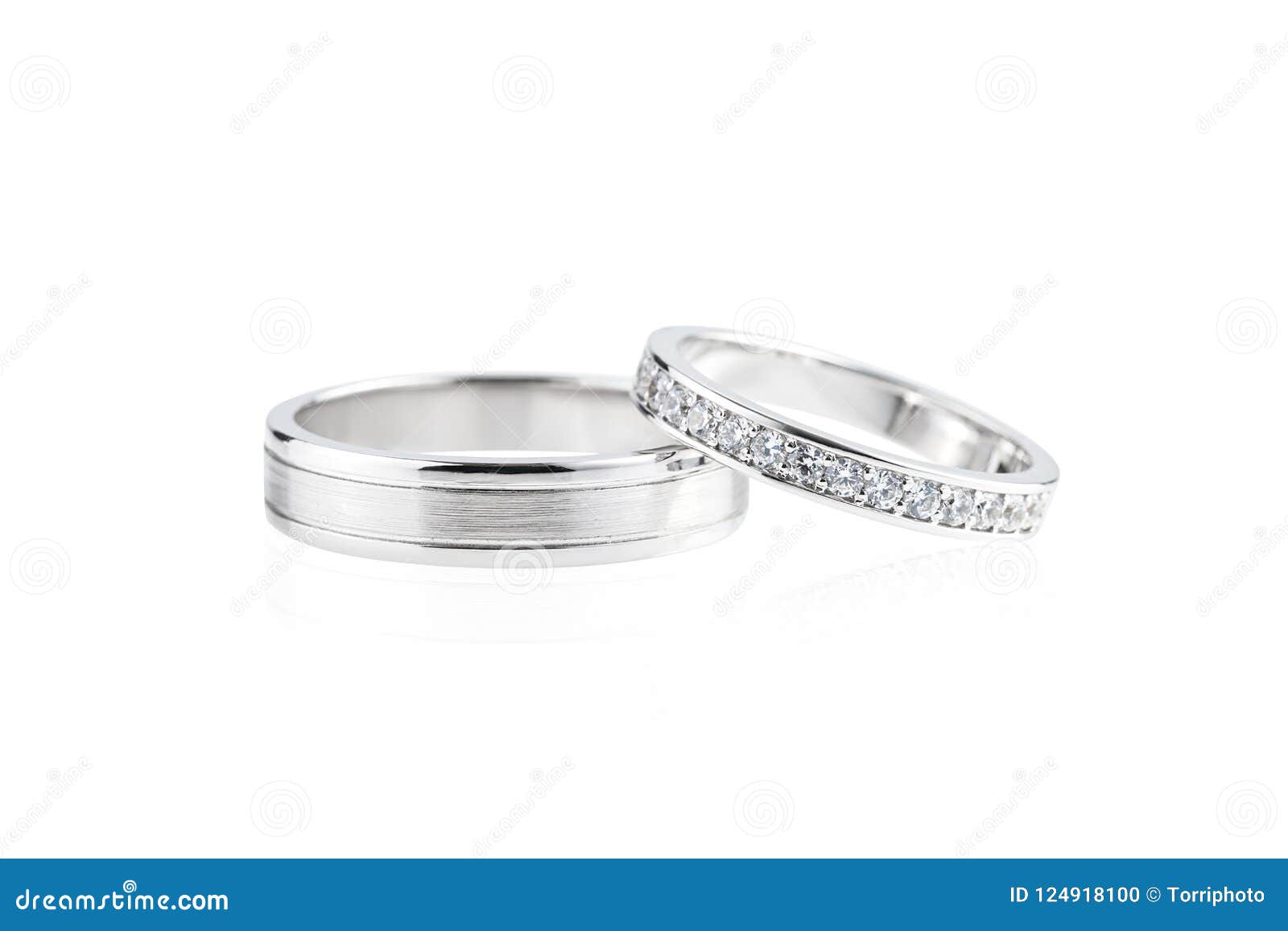 Pares Das Aliancas De Casamento De Prata Com Os Diamantes Isolados No Ccb Branco Imagem De Stock Imagem De Pares Branco 130319399