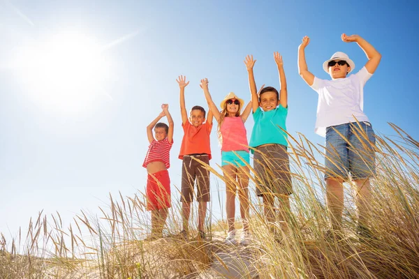 Grupo Amigos Felizes Divertindo Praia Sob Por Sol Ferias Stock Photo C Nd3000 285542570