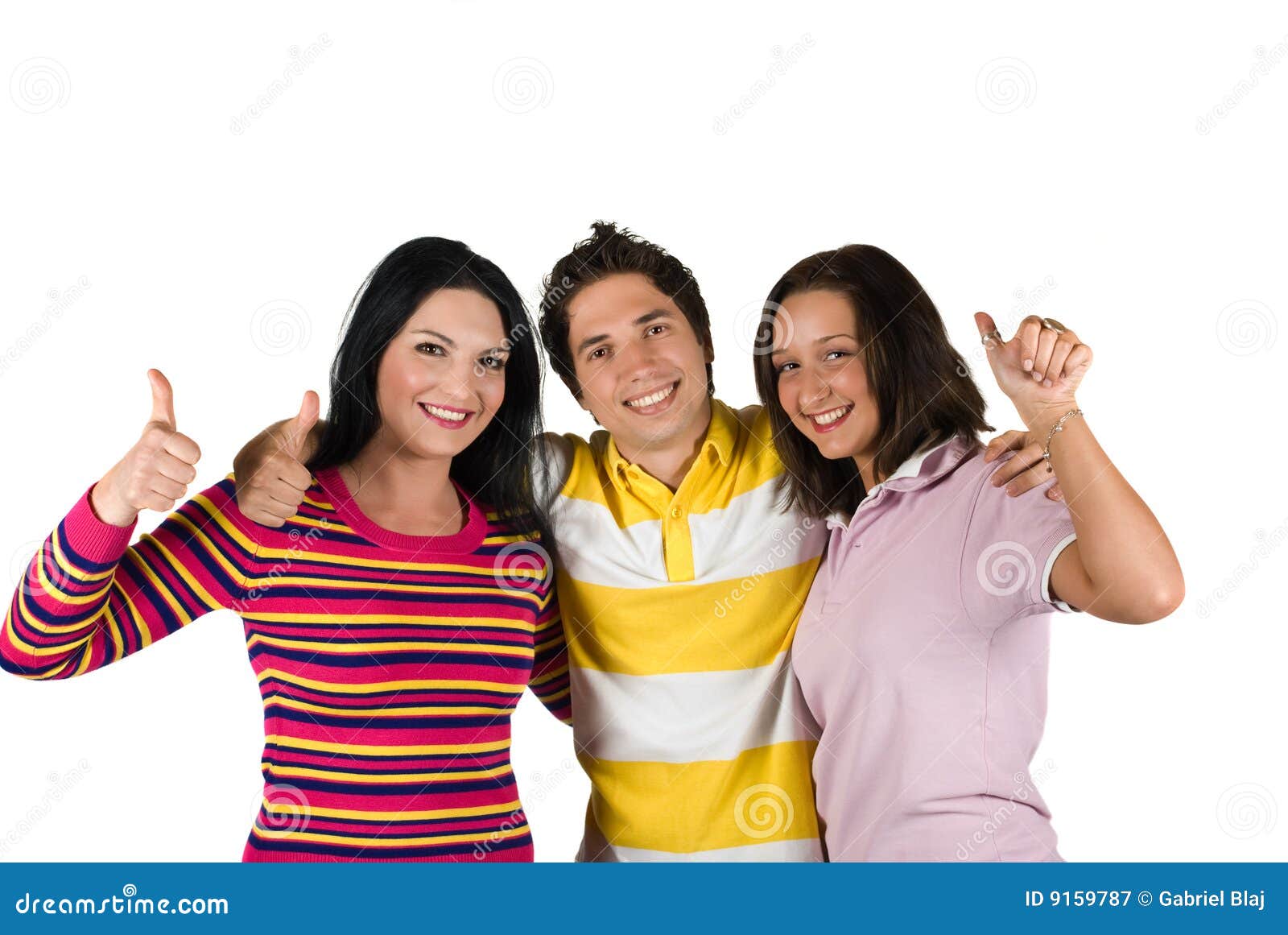 Tres Amigos Felizes Com Thumbs Up Imagem De Stock Imagem De Felizes Tres 9159787