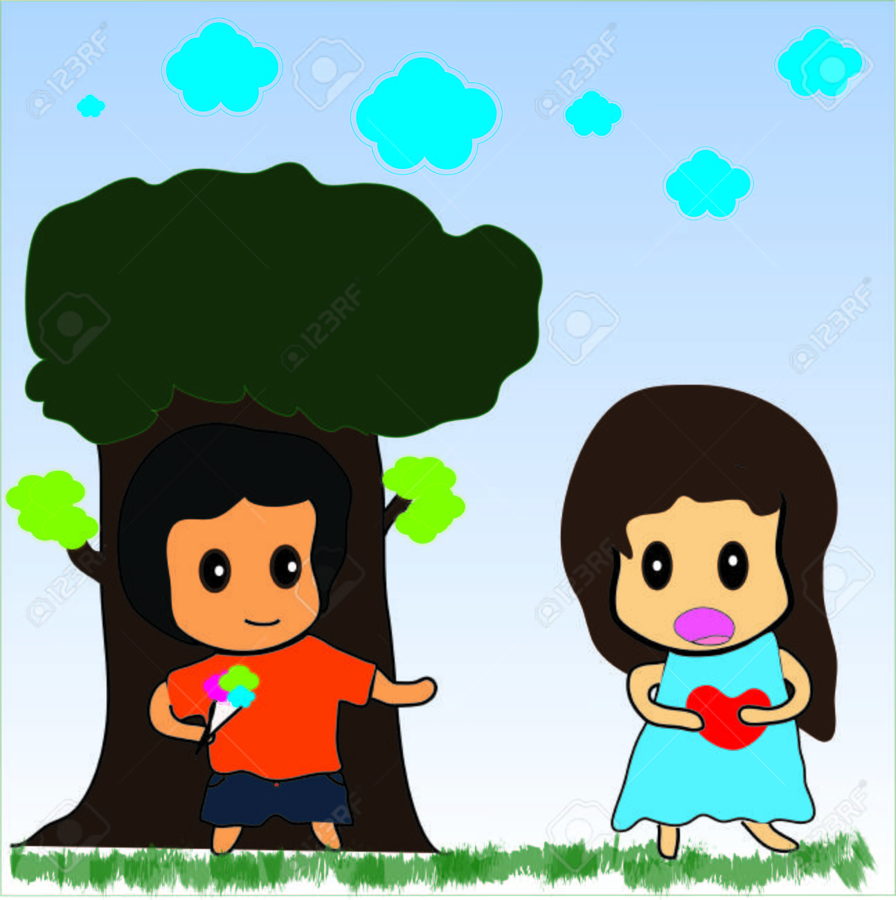 Arte Diseno Dibujos Animados Nino Y Nina Amistad Fotos Retratos Imagenes Y Fotografia De Archivo Libres De Derecho Image 49997831