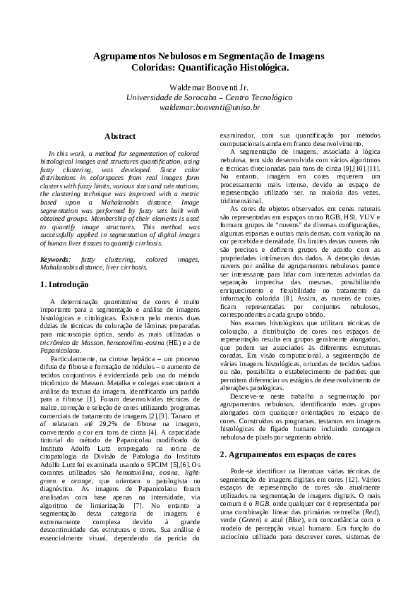 Pdf Agrupamentos Nebulosos Em Segmentacao De Imagens Coloridas Quantificacao Histologica Waldemar Bonventi Academia Edu