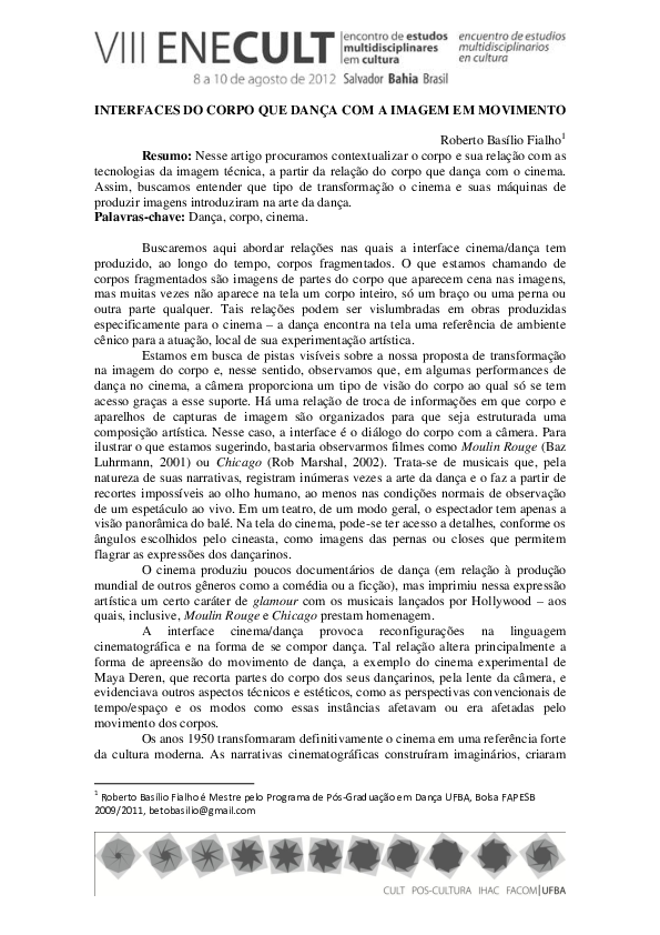 Pdf Interfaces Do Corpo Que Danca Com A Imagem Em Movimento Roberto Basilio Academia Edu