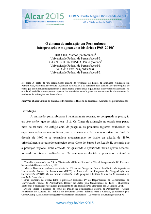 Pdf O Cinema De Animacao Em Pernambuco Interpretacao E Mapeamento Historico 1968 2010 Marcos Buccini And Paulo Cunha Academia Edu