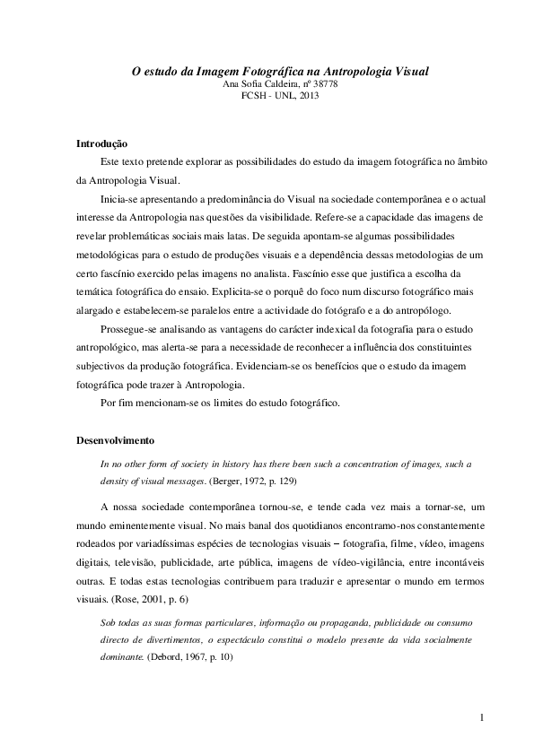 Pdf Ensaio O Estudo Da Imagem Fotografica Na Antropologia Visual Sofia Caldeira Academia Edu