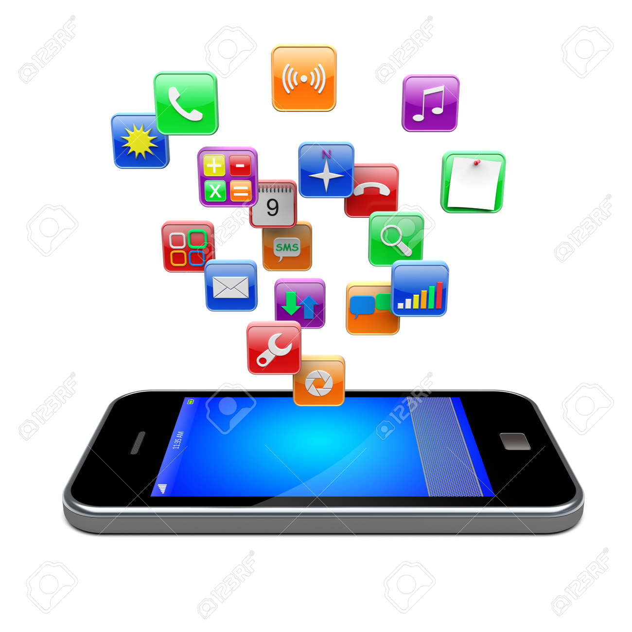 Mobile Smart Phone With Software Apps Icons 3d Image Banco De Imagens Royalty Free Ilustracoes Imagens E Banco De Imagens Image 15701398