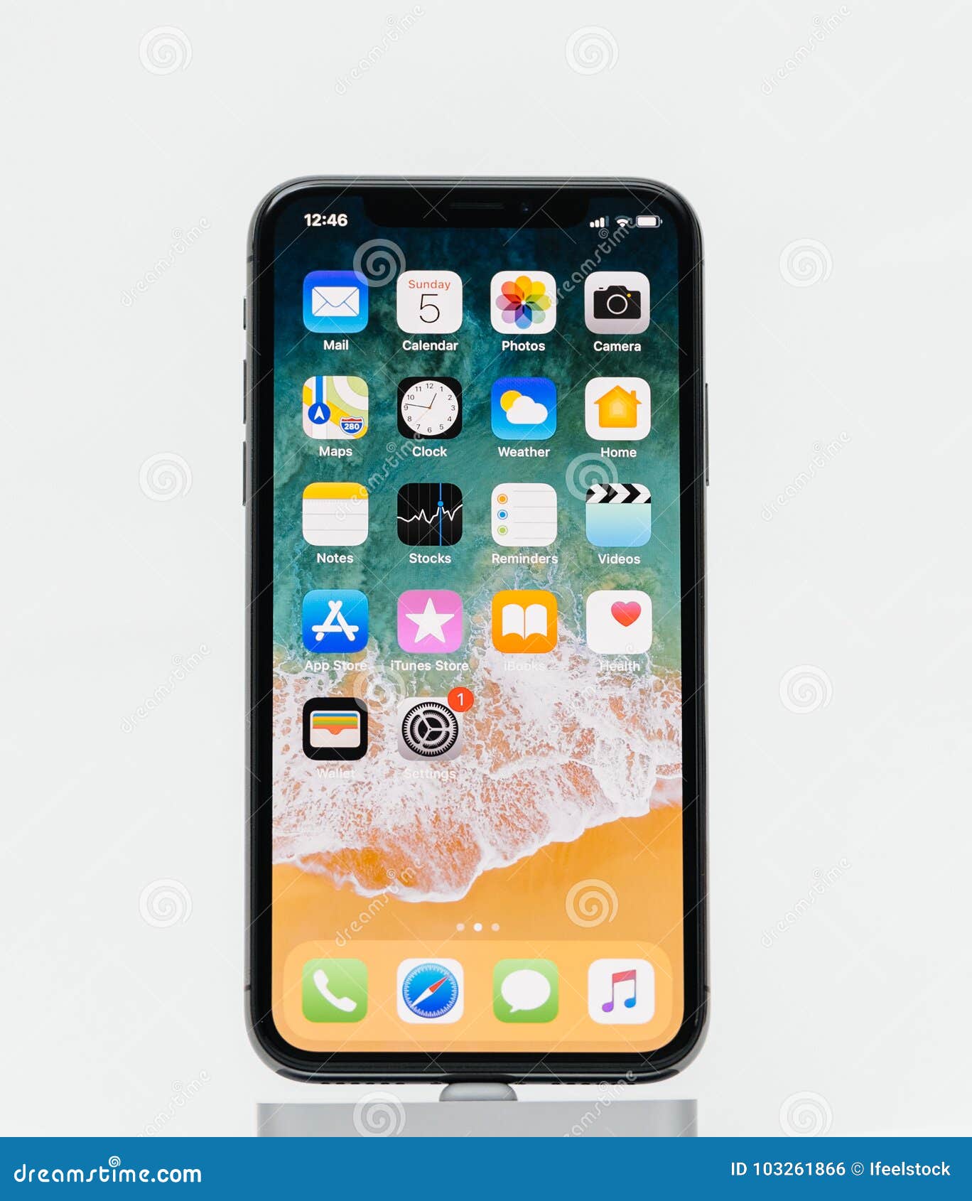 Iphone X De Apple Nos Apps Brancos Da Tela Home Do Fundo Foto Editorial Imagem De Brancos Apps 103261866