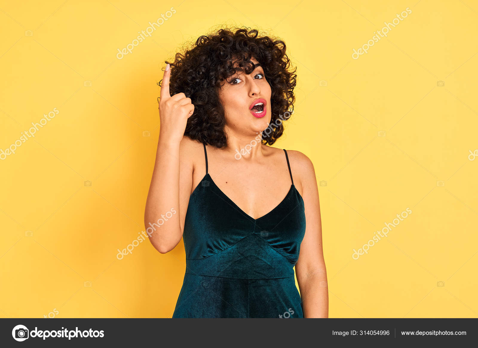 Mulher Arabe Jovem Com Cabelo Encaracolado Vestindo Vestido Elegante Sobre Fotos Imagens De C Krakenimages Com 314054996