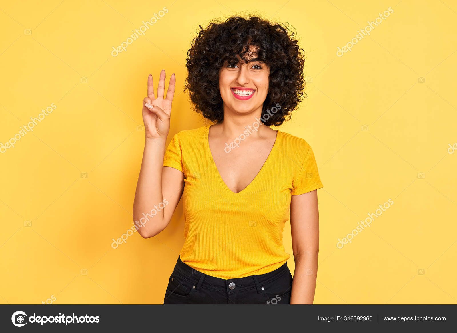 Mulher Arabe Jovem Com Cabelo Encaracolado Vestindo Shirt Sobre Fundo Fotos Imagens De C Krakenimages Com 316092960