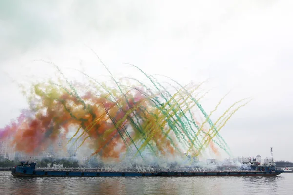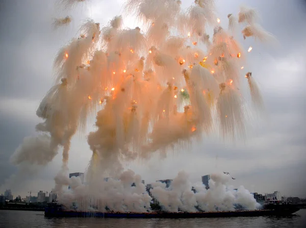 Fogos Artificio Explodem Sobre Rio Huangpu Uma Obra Arte Efemera Fotografia De Stock Editorial C Chinaimages 241952442