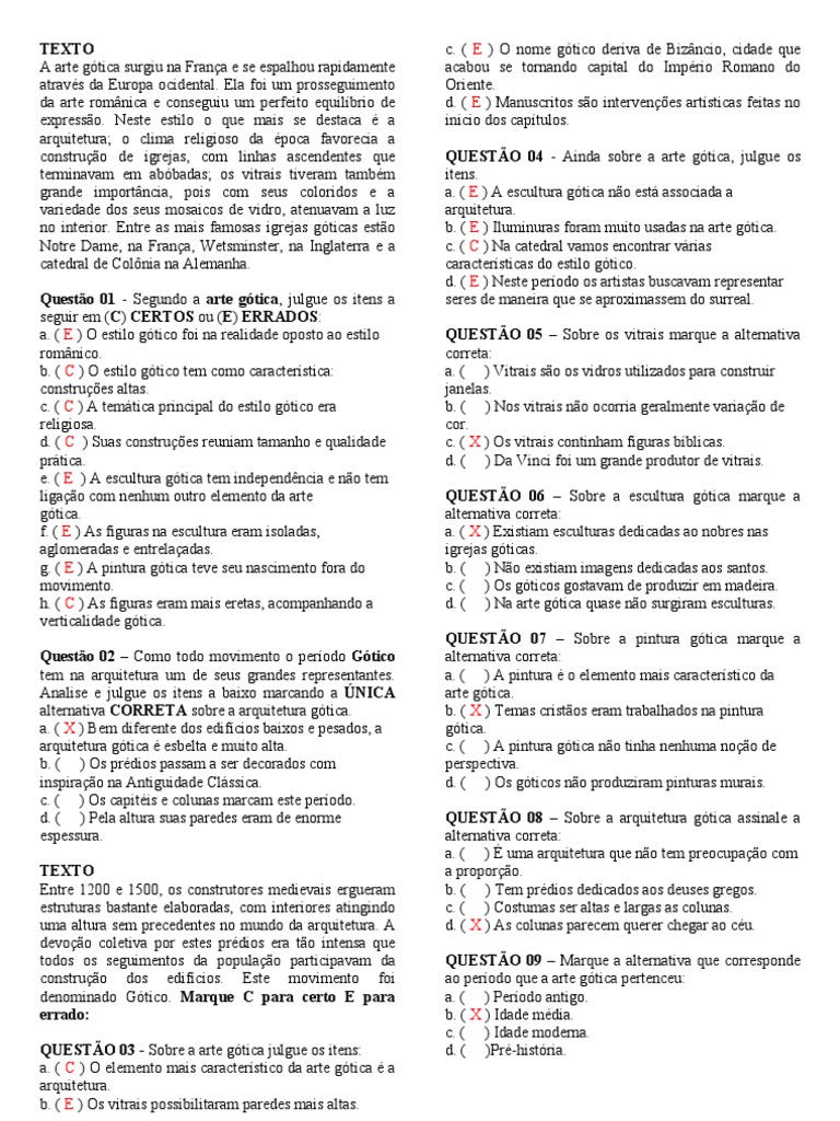 Exercicios Arte Gotica 2bim Arquitetura Gotica Escultura