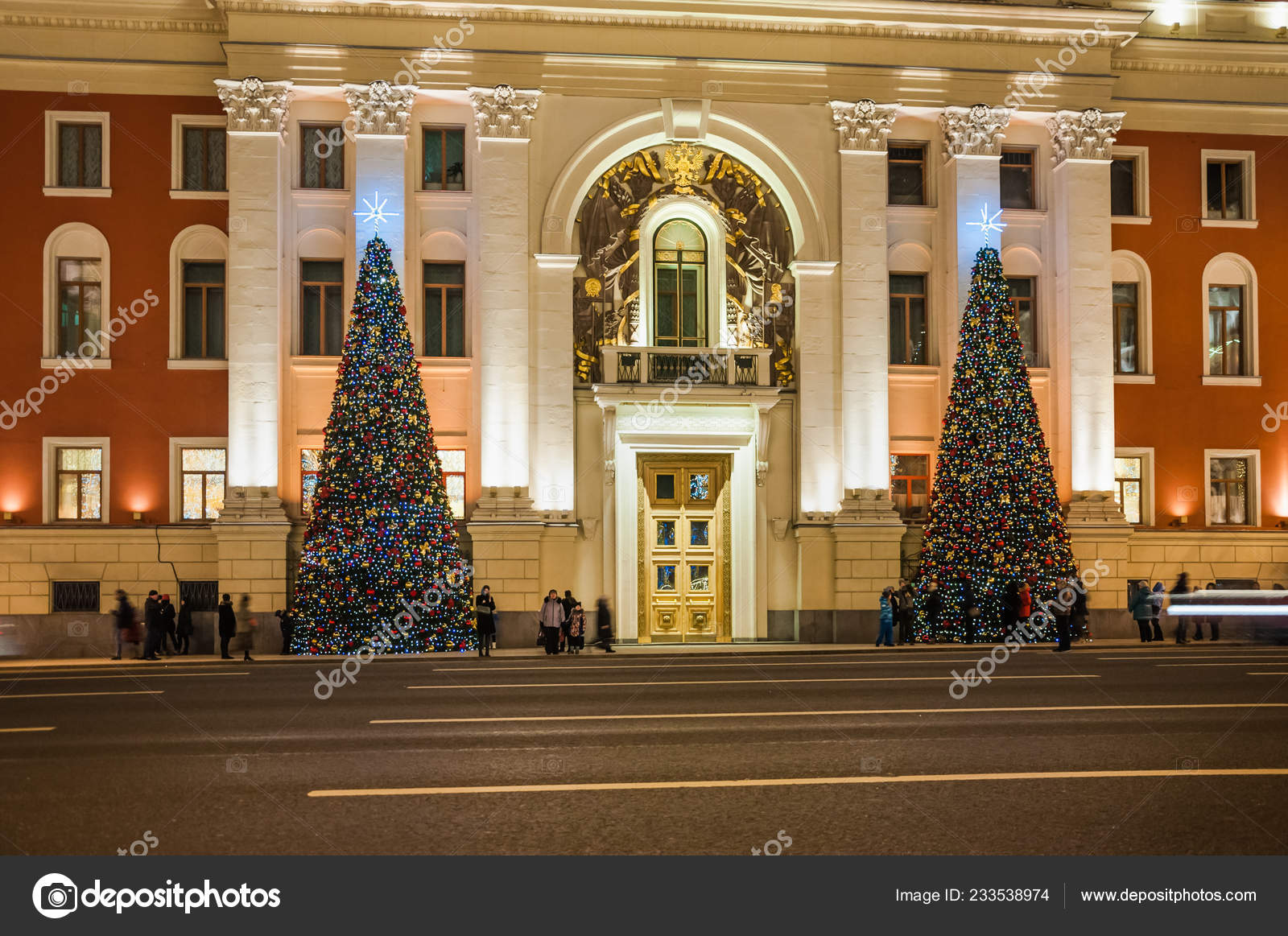 Moscou Russia Dezembro 2018 Arvores Natal Decoradas Contra Museu Historico Fotografia De Stock Editorial C Kcuxen 295316748