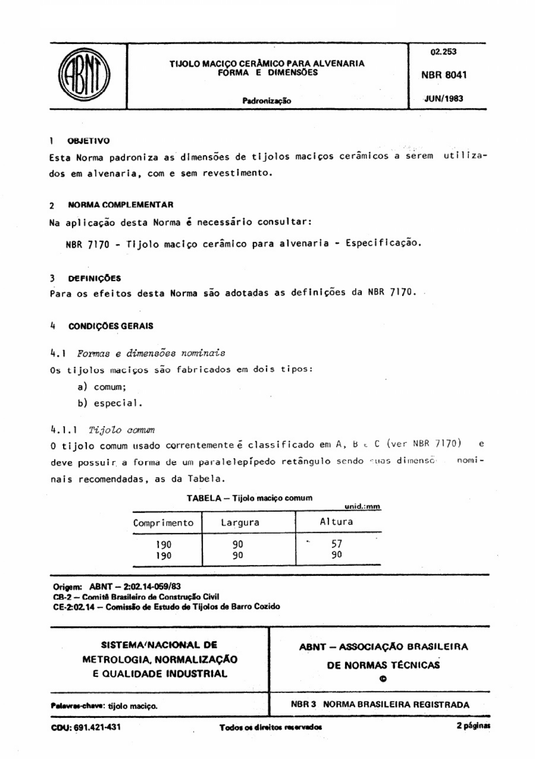 Nbr 8041 Tijolo Macico Ceramico Para Alvenaria Forma E Dimensoes Padronizacao Engenharia Civil