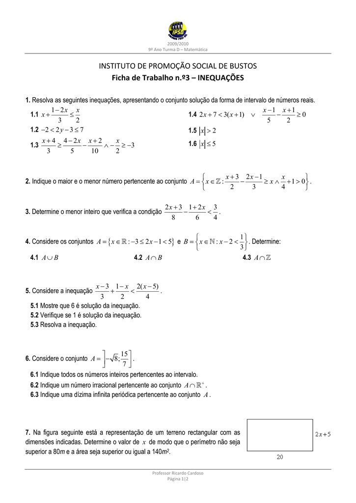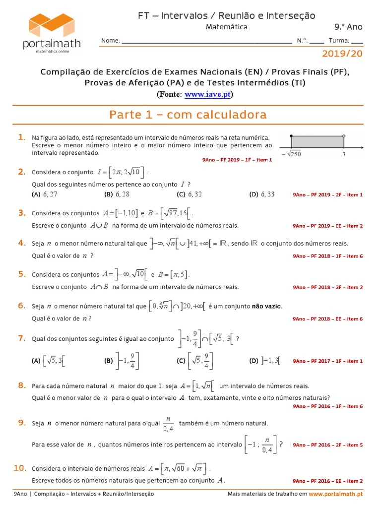 2018 2019 9 º Ano Teste N º 1 Numeros Reais Intervalos E Inequ