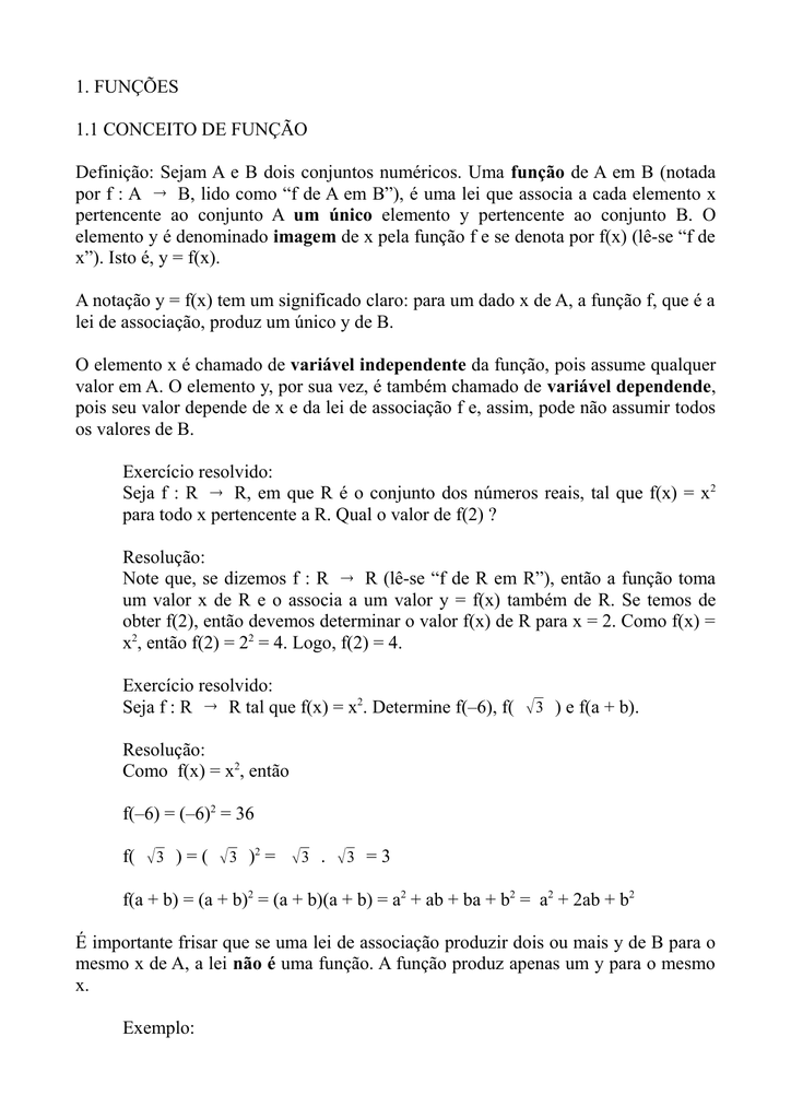 1 Funcoes 1 1 Conceito De Funcao Definicao Sejam A E B