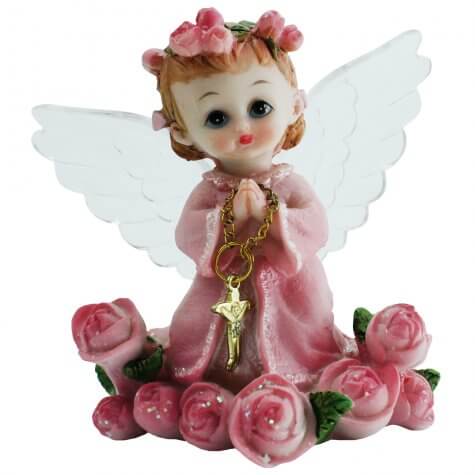 Imagem De Resina Anjo Com Rosas E Asa Rosa 8 Cm Sjo Artigos Religiosos