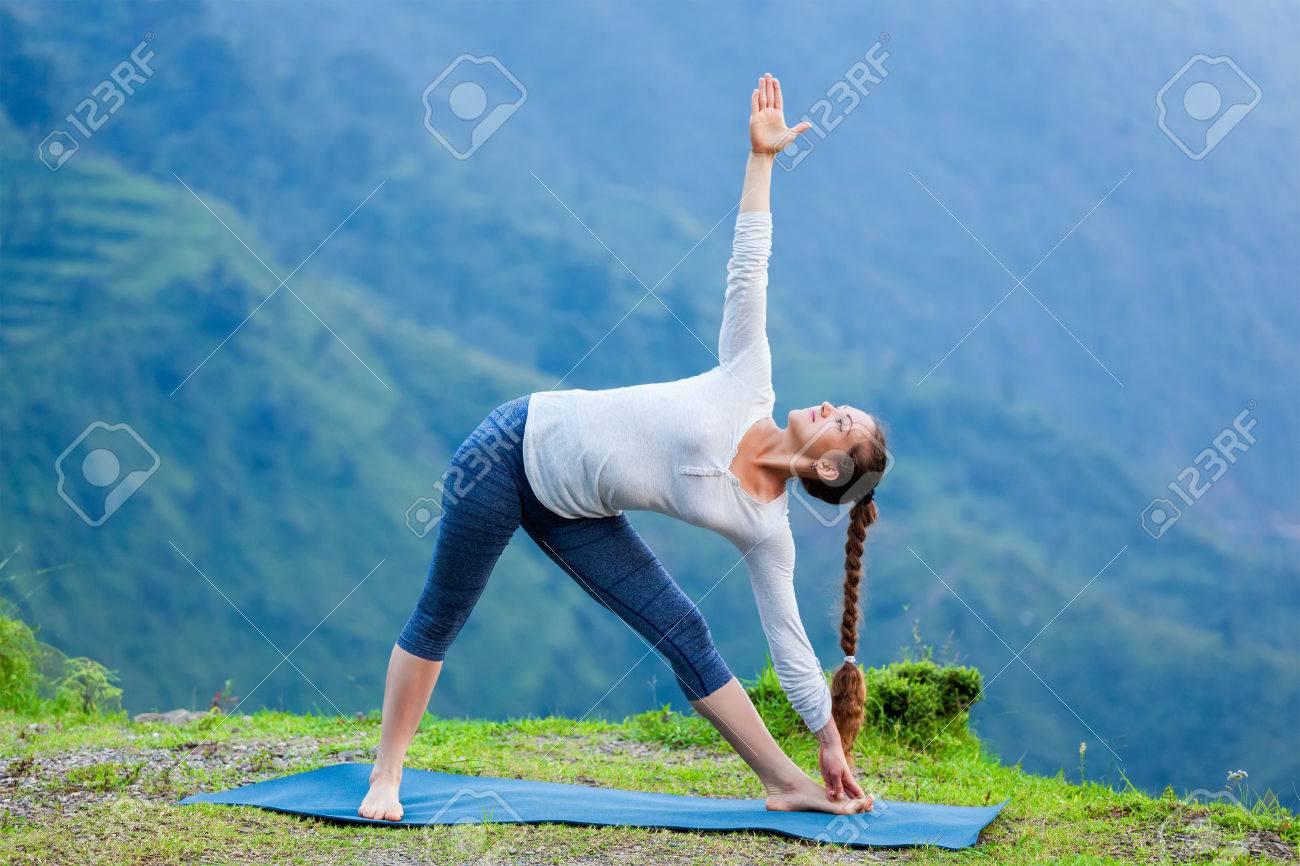 Woman Doing Ashtanga Vinyasa Yoga Asana Utthita Trikonasana Stock Photo Picture And Royalty Free Image Image 56084534