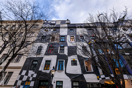 Vienna Austria December 27 2017 Facade Of Kunst Haus Wien Museum In Landstrasse District Designed By Friedensreich Hundertwasser Building Decorated With Enamelled Colorful Checkerboard Mosaics Compre Esta Fotografia E Explore Imagens
