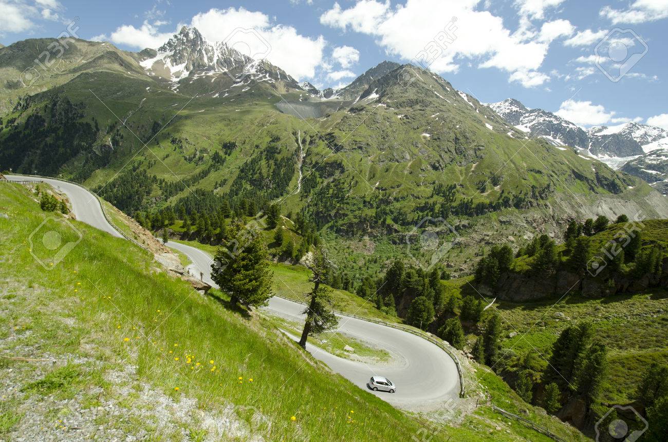 Austria Serpentines Of Mountain Road Named Kaunertal Glacier Road In Austrian Alps Banco De Imagens Royalty Free Ilustracoes Imagens E Banco De Imagens Image 40014033