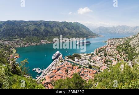 Panorama De La Bahia De Kotor Con La Ciudad Rodeada De Montanas En Montenegro Fotografia De Stock Alamy