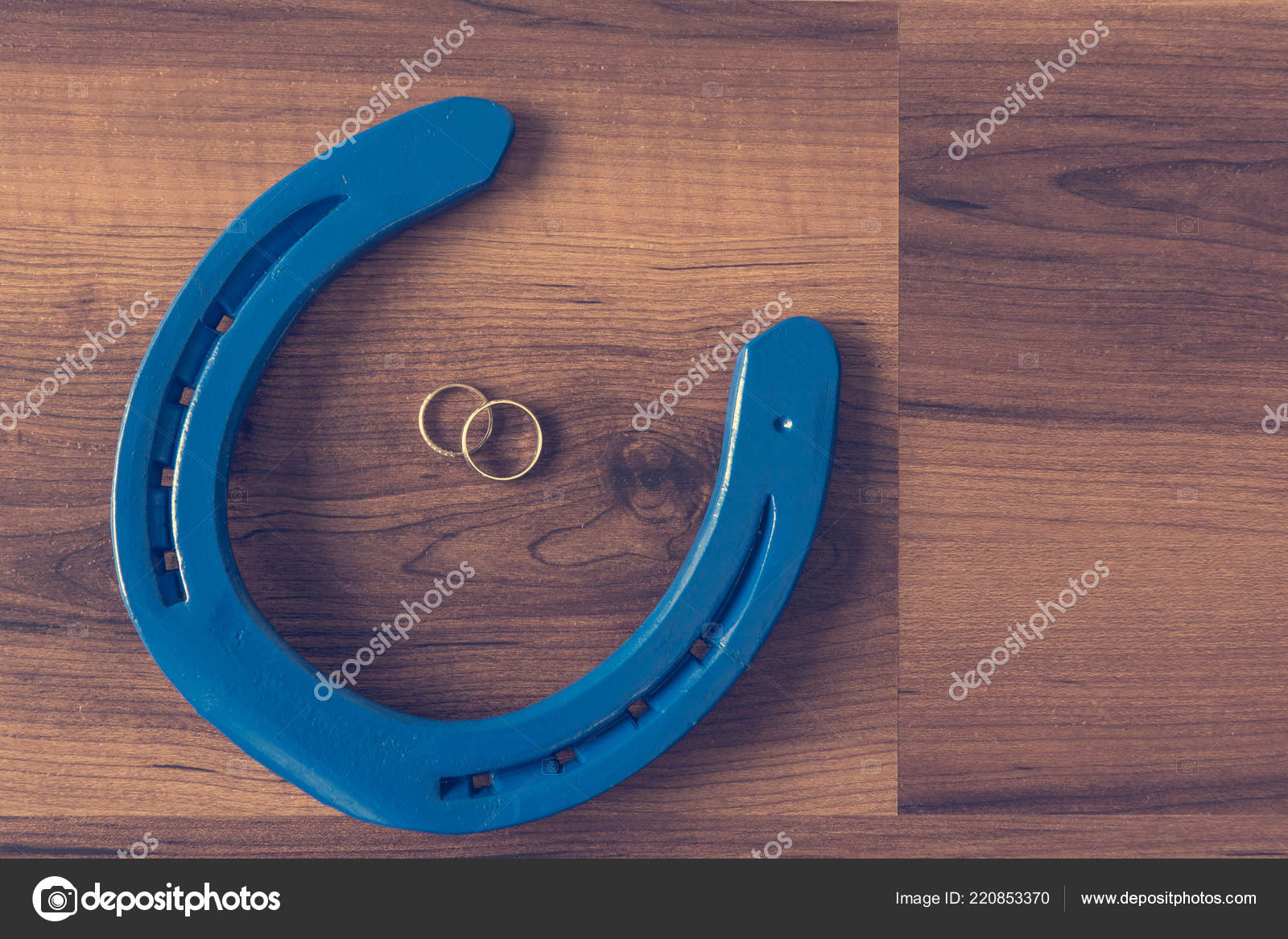 Aliancas De Casamento Em Ferradura Azul Na Mesa De Madeira Stock Photo C Anze Bizjan 220853370