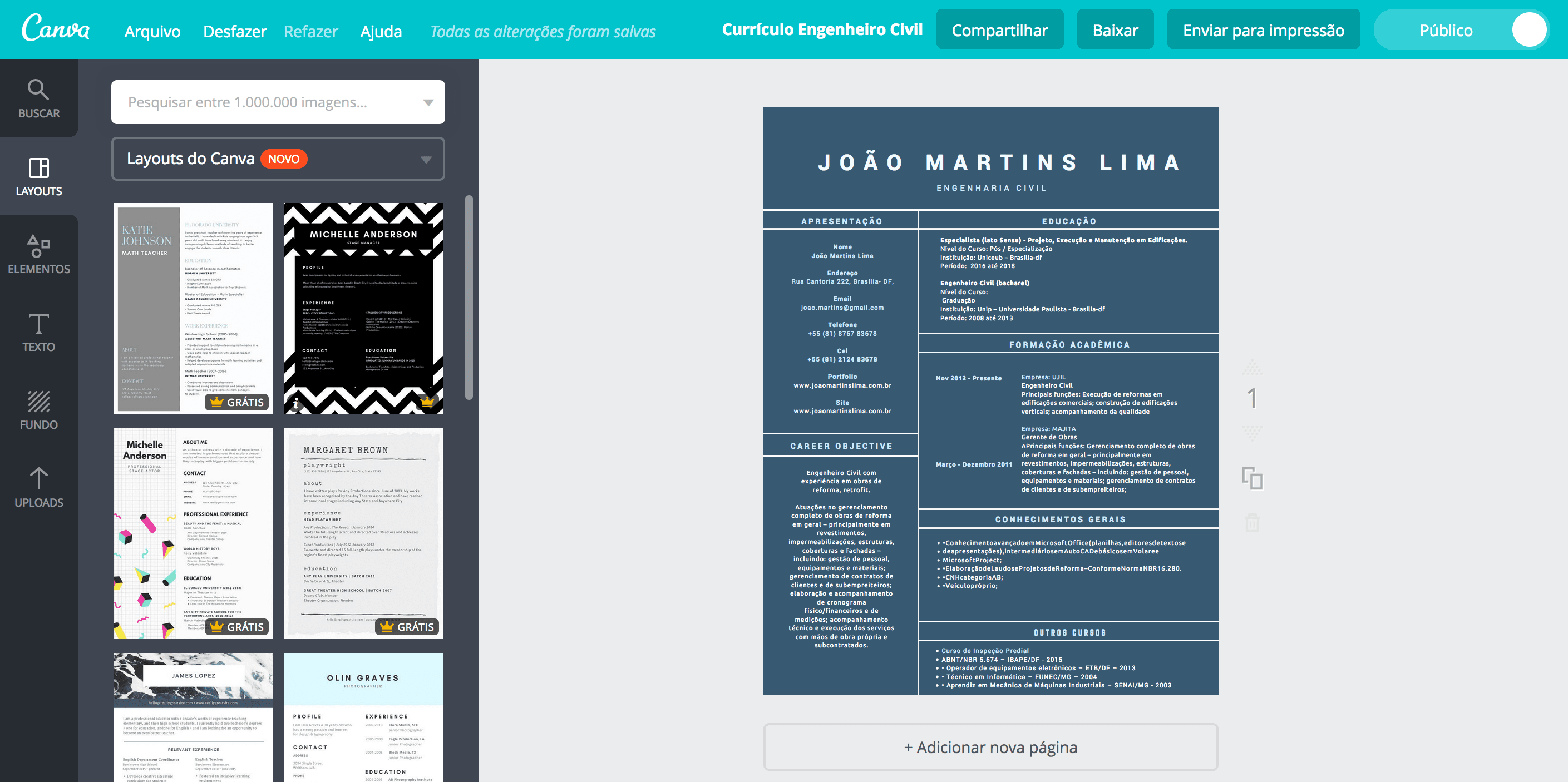 Modelo De Curriculo De Palavra De Engenheiro Civil Em Azul E Preto Doc Baixar Gratis Pikbest