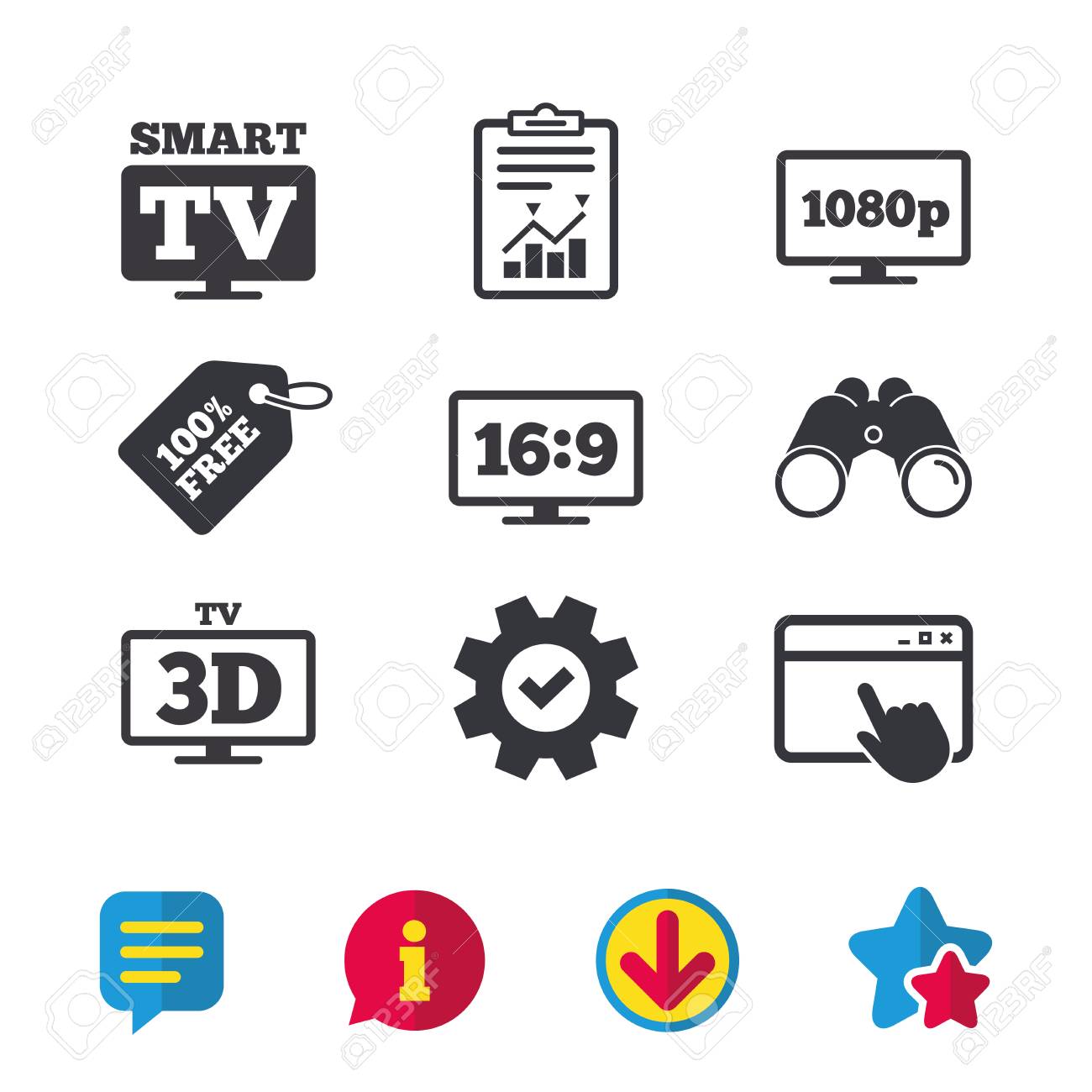 Smart Tv Mode Icon Aspect Ratio 16 9 Widescreen Symbol Full Hd 1080p Resolution 3d Television Sign Browser Window Report And Service Signs Binoculars Information And Download Icons Vector Royalty Free Cliparts Vetores