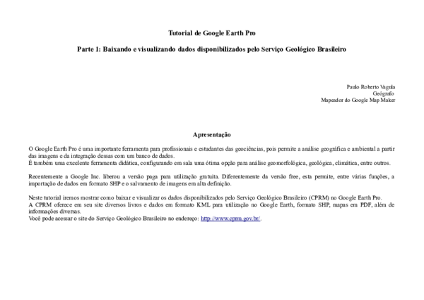 Pdf Tutorial De Google Earth Pro Baixando E Visualizando Dados Disponibilizados Pelo Servico Geologico Brasileiro Paulo Vagula Academia Edu