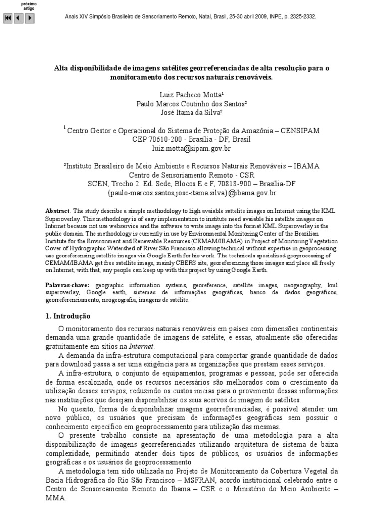 Alta Disponibilidade De Imagens Satelites Georreferenciadas De Alta Resolucao Para O Monitoramento Dos Recursos Naturais Renovaveis Pdf Free Download