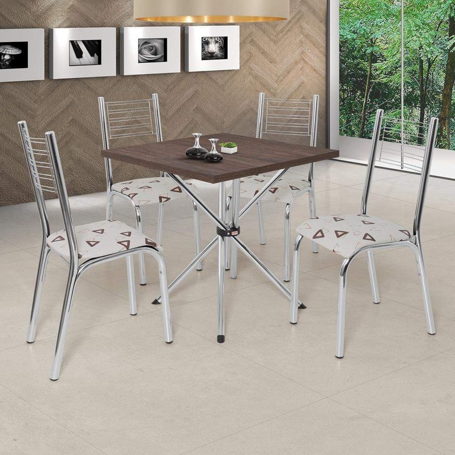 Conjunto De Mesa Com 4 Cadeiras Camila Premium Ciplafe Cromado Bege Geometrico Madeiramadeira
