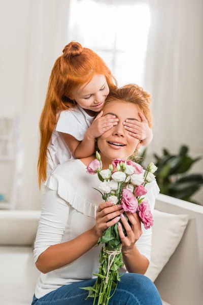 Presentes Dia Mae Maes Pequeno Flores Cintura Espaco Dar Maes Feito A Mao Cima Dia Mae Retrato Menina Copia Canstock