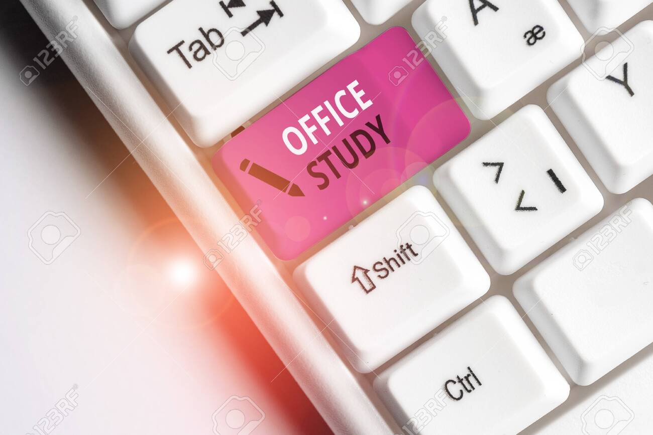 Handwriting Text Office Study Conceptual Photo Any Location Or Venue Where A Demonstrating S Is Work Is Performed White Pc Keyboard With Empty Note Paper Above White Background Key Copy Space Foto