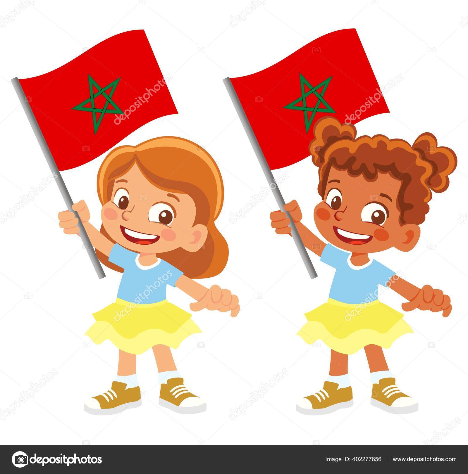 Bandeira Marrocos Mao Criancas Com Bandeira Bandeira Nacional Vetor Marrocos Vetores De Stock C Ollegn 402277656