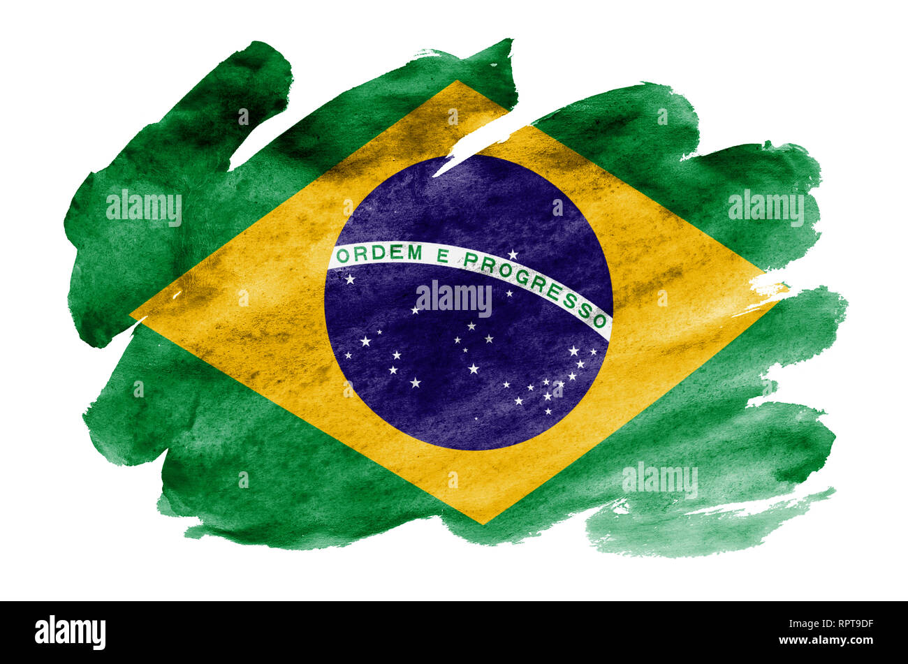 La Bandera De Brasil Es Representado En Estilo Acuarela Liquida Aislado Sobre Fondo Blanco Descuidado Sombreado De Pintura Con La Imagen De La Bandera Nacional Dia De La Independencia Fotografia De Stock