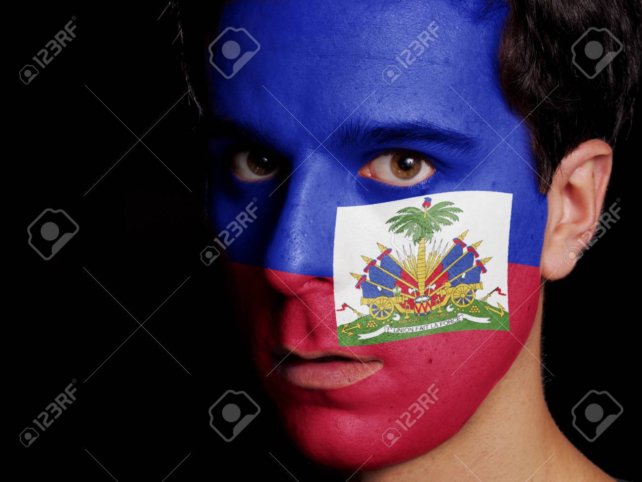 Bandera De Haiti Pintada En Una Cara De Un Hombre Joven Fotos Retratos Imagenes Y Fotografia De Archivo Libres De Derecho Image 24927171