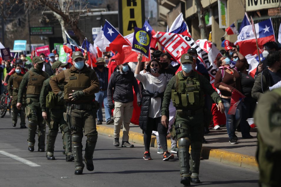 Fotos Banderas De Chile Y Eeuu E Imagenes De Pinochet En Marcha Del Rechazo Que Termino Con Tres Detenidos Cooperativa Cl