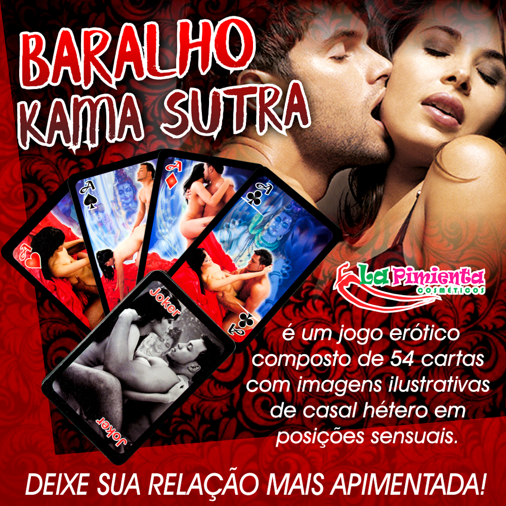 Baralho com todos os naipes e números contendo fotos de casal em posições eróticas inspiradas no milenar manual hindu. Surpreenda seu parceir aqui quem perde paga. Baralho de cartas convés. Ideal para levar mais descontração em seus momentos de lazer com os amig s e também para diferenciar sua relação surpreendendo com jogos diferentes que levam a praticarem as posições do baralho.