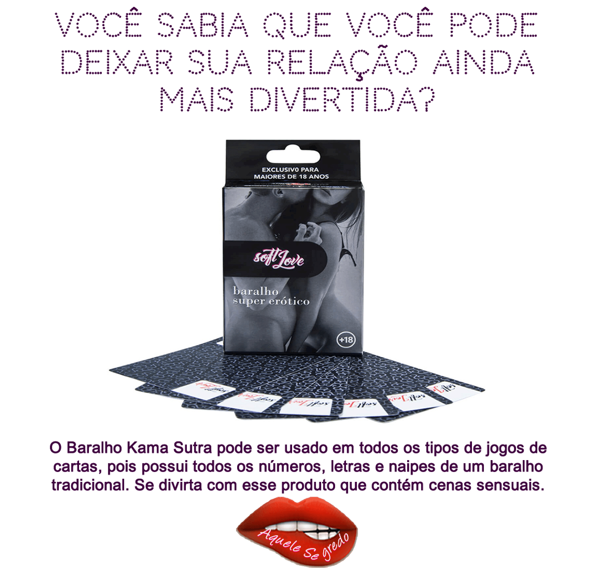 Baralho super erótico kama sutra 54 cartas soft love. Perfeito para uma brincadeira super excitante que com certeza vai terminar em uma relação bem mais quente. Manter em local arejado e seco. Baralho super erótico composto por 54 cartas com imagens.