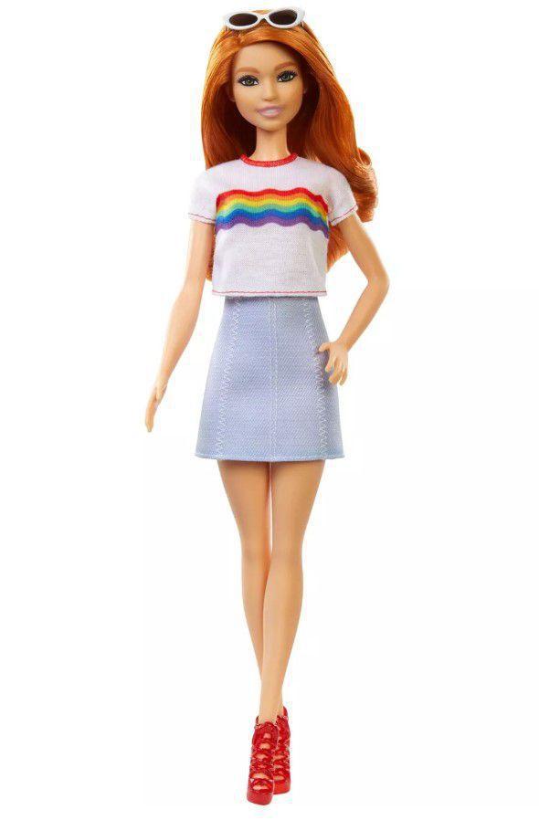 Boneca Barbie Fashionistas 122 Cabelo Vermelho Com T Shirt Com Arco Iris Mattel Boneca Barbie Magazine Luiza