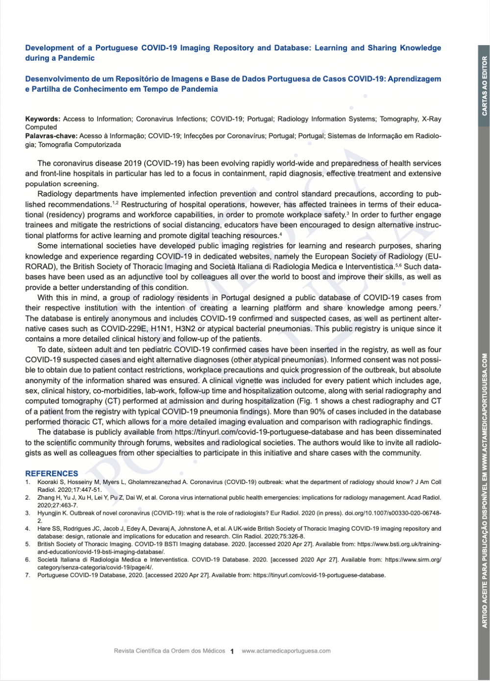 Desenvolvimento De Um Repositorio De Imagens E Base De Dados Portuguesa De Casos Covid 19 Aprendizagem Em Tempo De Pandemia Divulgacoes Ordem Dos Medicos