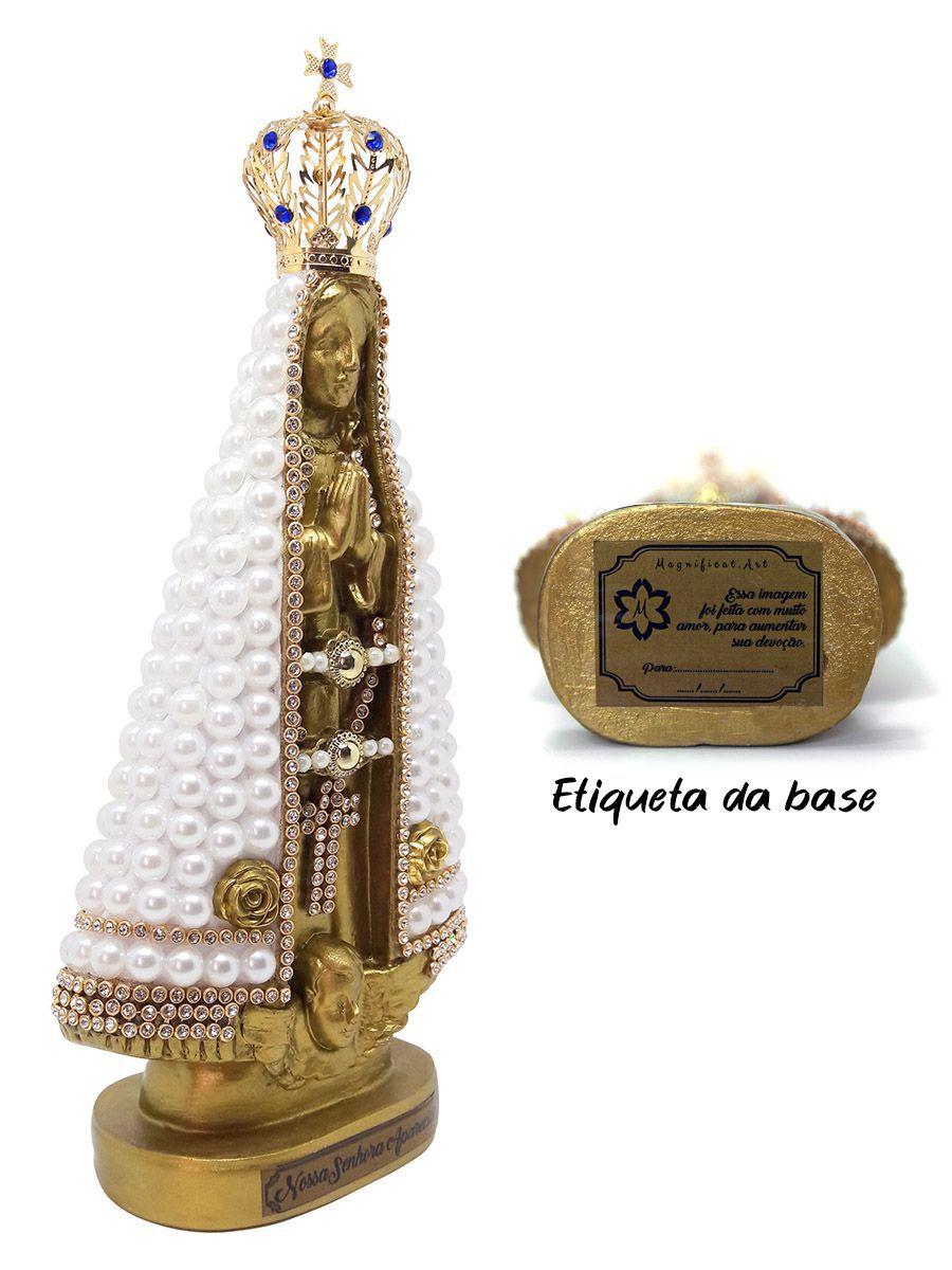 Nossa Senhora Aparecida 25 Cm Em Gesso E Manto Em Perolas Brancas Com Coroa Metalica Magnificat Art Imagens De Santos Magazine Luiza