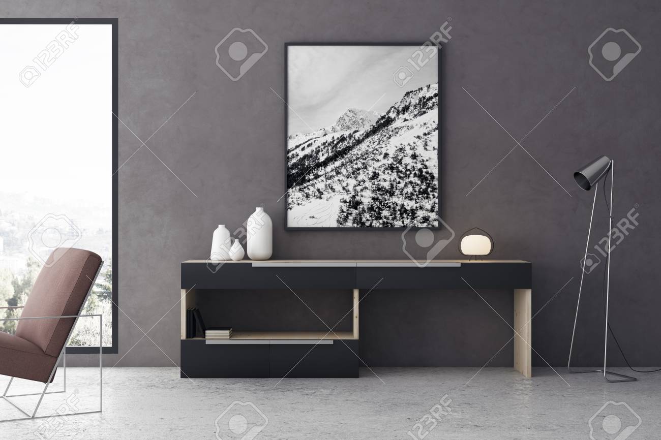 Interior Da Sala De Estar Contemporanea Com Belas Imagens Em Vista Da Moldura Futniture E Cidade Renderizacao Em 3d Fotos Retratos Imagenes Y Fotografia De Archivo Libres De Derecho Image 87654446
