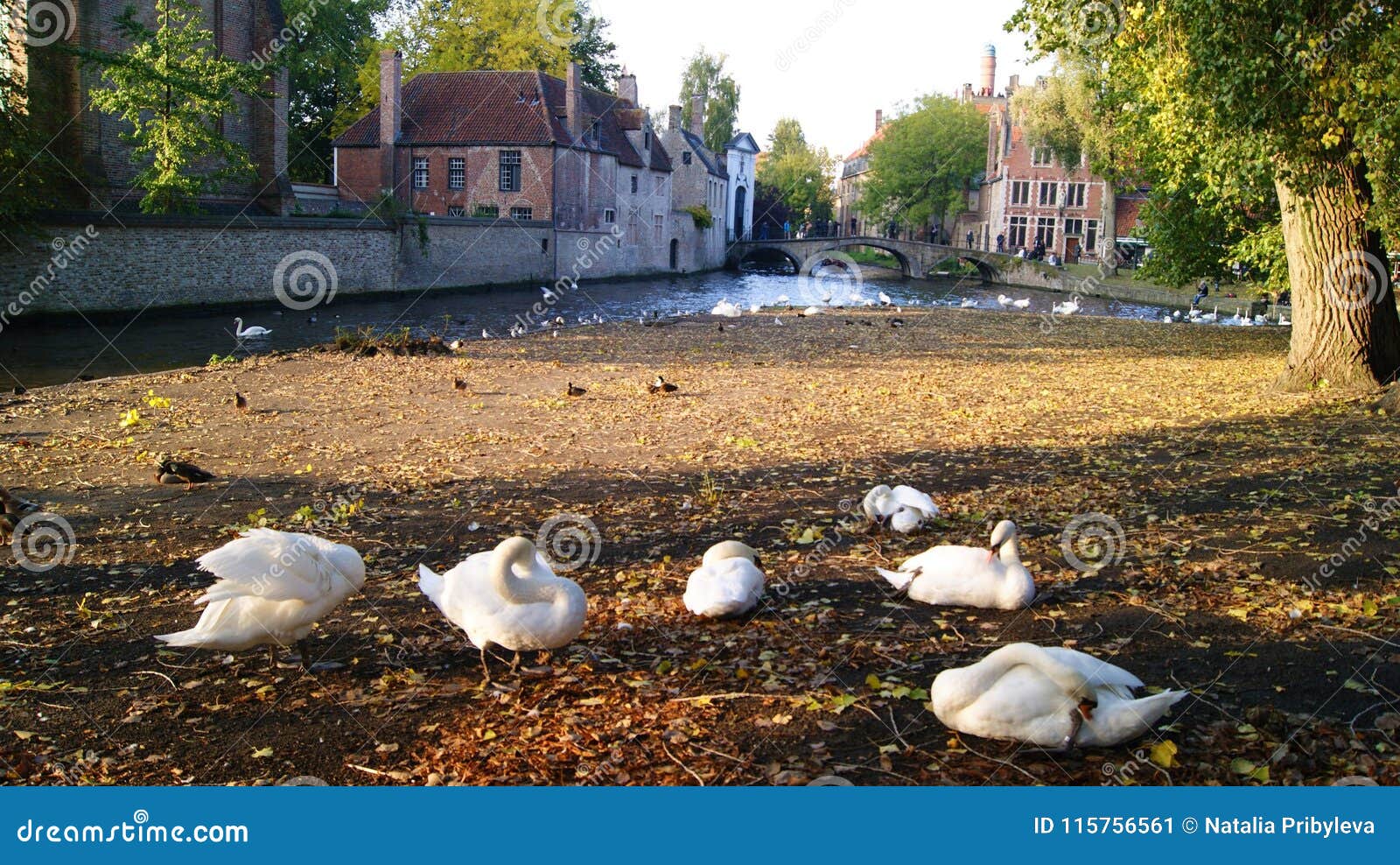 Lago Do Amor E Das Cisnes Bruges Belgica Imagem De Stock Imagem De Amor Cisnes 105000169