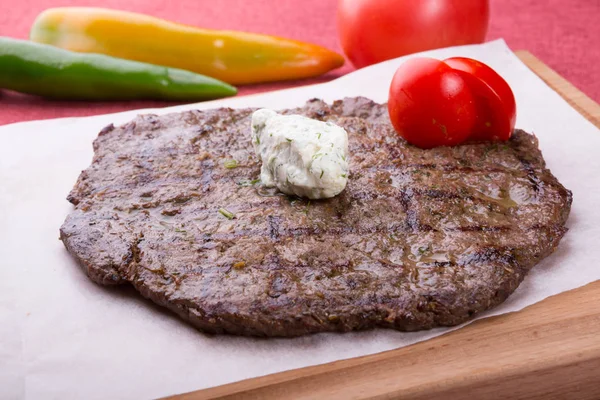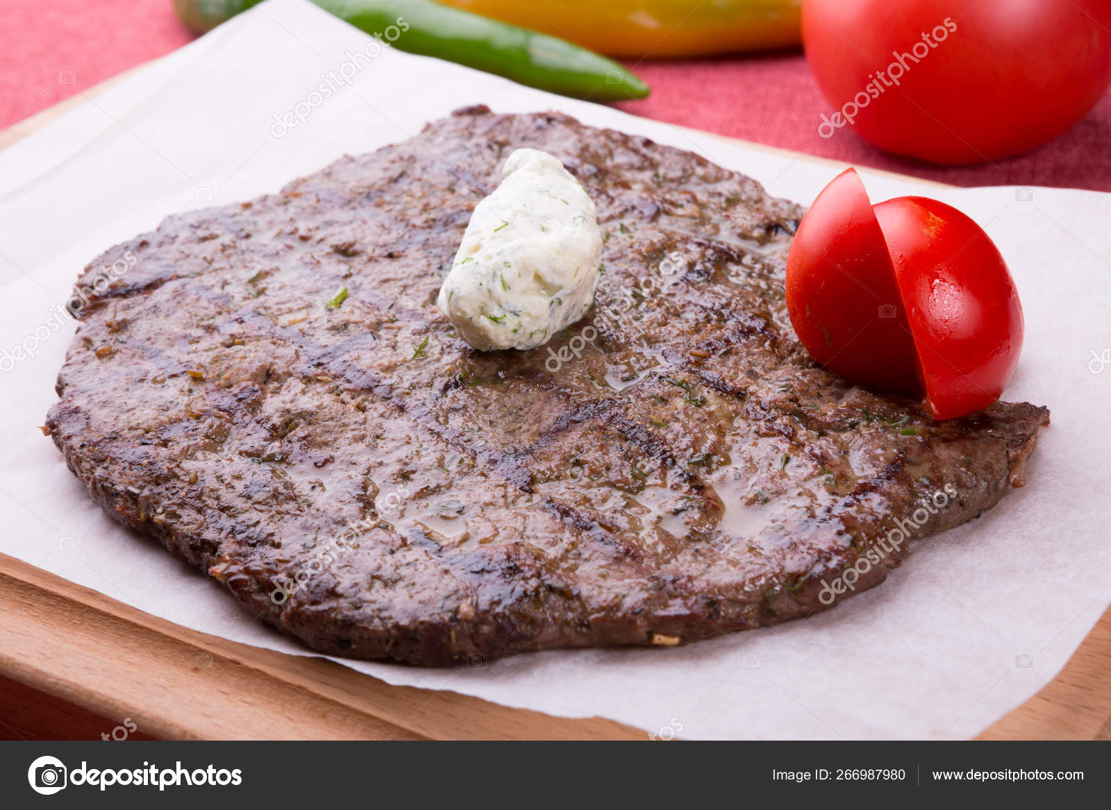 Bife De Carne De Cavalo Frito Servido Em Tabua De Madeira Stock Photo C Dukeii 266987980