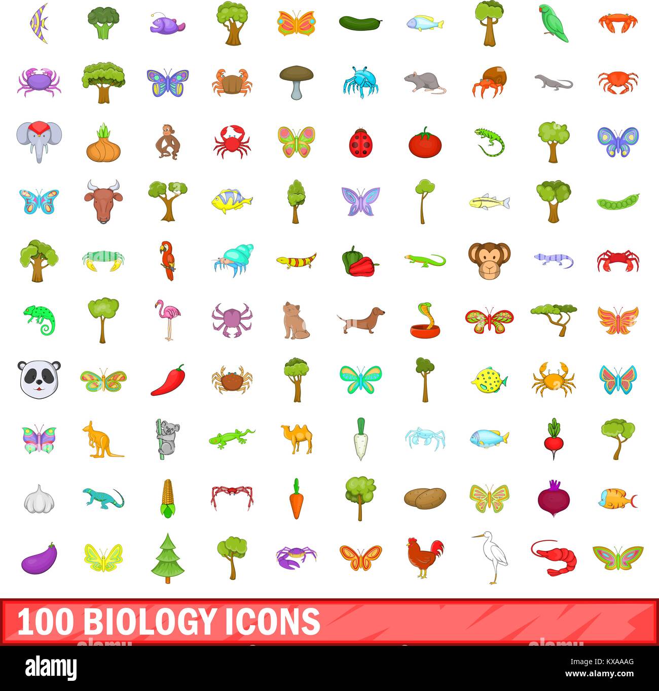 100 Iconos En Biologia Estilo De Dibujos Animados Imagen Vector De Stock Alamy